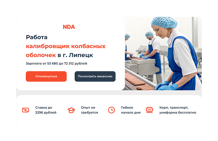 Каждая вакансия получала посадочную страницу, созданную по универсальному шаблону. Эти страницы адаптировались под разные вакансии со значительными изменениями. Такой подход позволит быстро вносить изменения в контент (например, изменение информации о зарплате, условиях работы) без необходимости производить каждую страницу с нуля.
