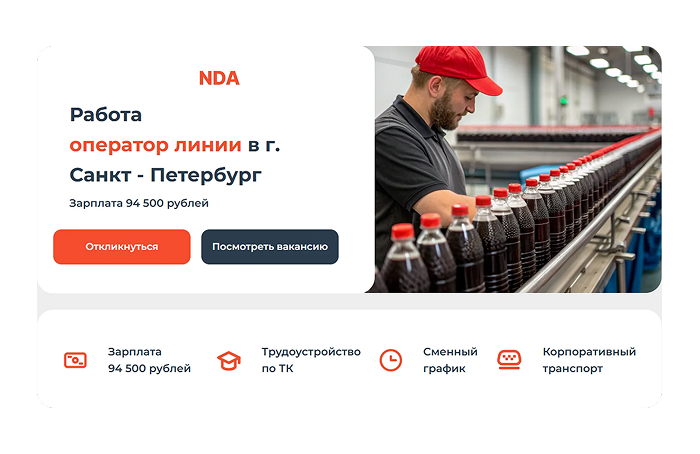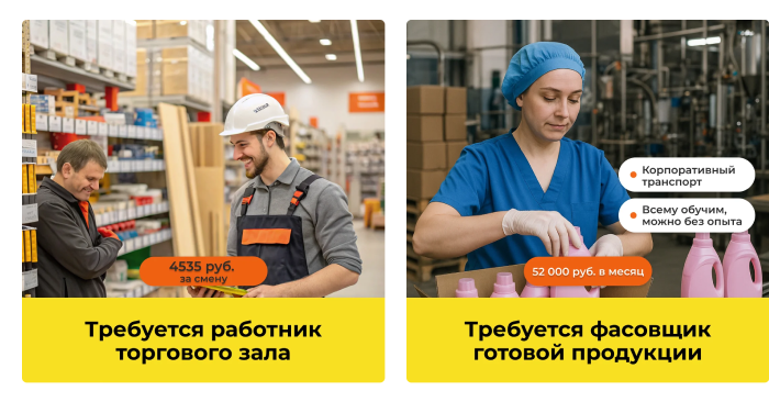 Вакансии на рабочих местах почти каждый день, охватывая разные профессии — от рабочих до специалистов. При этом рекламные кампании проводятся под брендом агентства без указания работодателя. Каждую новую должность необходимо быстро запустить в рекламу, чтобы обеспечить стабильный поток кандидатов.