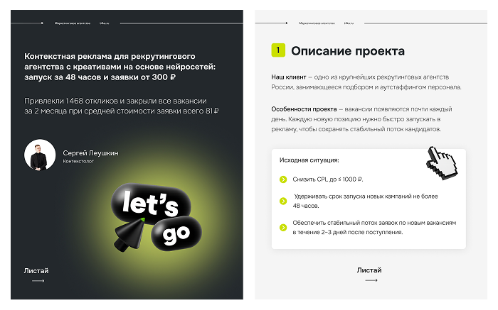 «Привет! Я — специалист по контекстной рекламе. В нашем агентстве мы часто работаем с проектами в сфере рекрутинга и подбора персонала. В этом кейсе я расскажу, как мы ускорили запуск рекламных кампаний для сотен вакансий, снизили стоимость заявок до 900 ? и обеспечили стабильный поток лидов в течение 1-2 дней после поступления каждой вакансии»