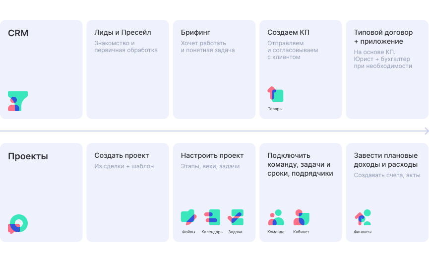 Аспро.Cloud кардинально изменила эту ситуацию. Теперь менеджер проекта и участники команды подключаются к CRM-системе уже на стадии брифинга и совместно ведут клиента по воронке продаж. Это исключает потерю данных по сделкам и обеспечивает понимание ожиданий заказчика всеми участниками процесса.