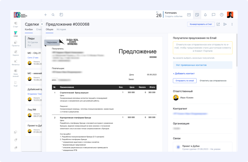 Команда добавила в каталог системы все свои услуги. Теперь продукты и их стоимость автоматически включаются в коммерческие предложения, что экономит время и минимизирует ошибки в расчетах.