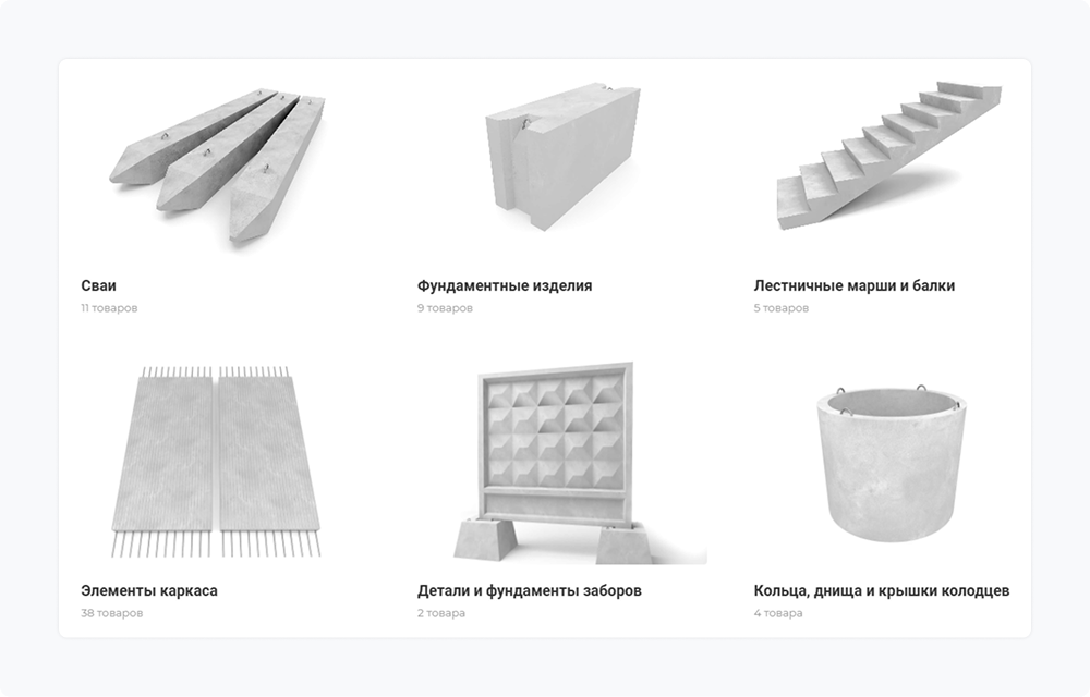 Структура товарной линейки завода включает около 100 наименований, что позволило создать интуитивно понятную навигацию без сложных фильтров. Посетители могут найти нужную продукцию за несколько переходов.
