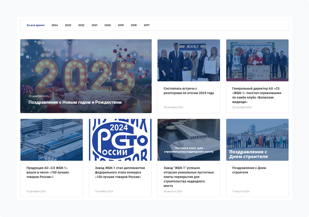 Информационная прозрачность компании усилилась благодаря активному ведению корпоративного блога. Хронологическая навигация по годам позволяет быстро найти архивные материалы о деятельности предприятия.