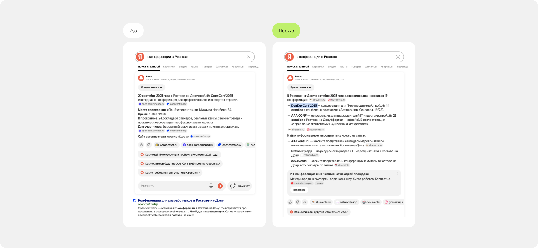 За счёт грамотного PR конференция DonDevConf превратилась в событие, которое постоянно всплывает в информационном поле — а значит, чаще попадает в выборку источников для нейросетей.