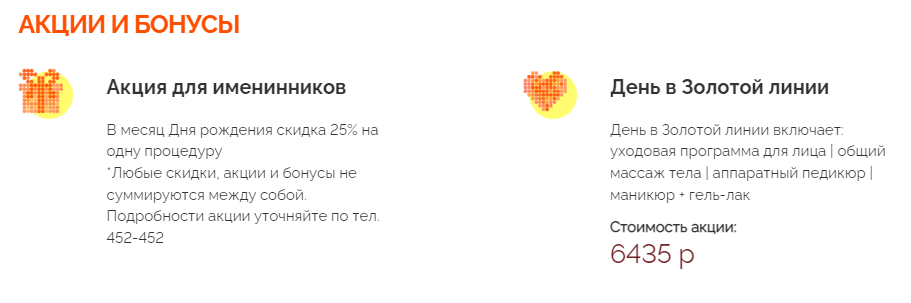 ПрайсОбязательная страница для сайта в бьюти-индустрии. Отсутствие удобной цены будет раздражать пользователя и предлагать рекомендации по прозрачности ценообразования.
