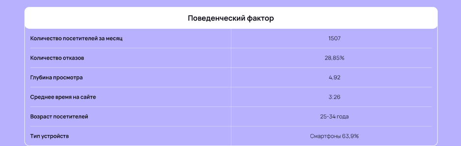 Цель клиента через продвижение — занять более высокие позиции среди конкурентов и увеличить трафик на сайте, что в перспективе приведет к увеличению количества лидов. Соответственно, наша задача как исполнителей — достичь этой цели, выведя сайт в топ поисковой выдачи.