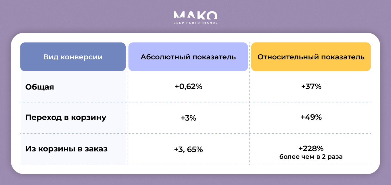 Запустили кампанию по брошенным корзинам: пользователи предложили промокод на скидку 8%, если они вернутся и завершат заказ. Дополнительно получили 8 продаж.
