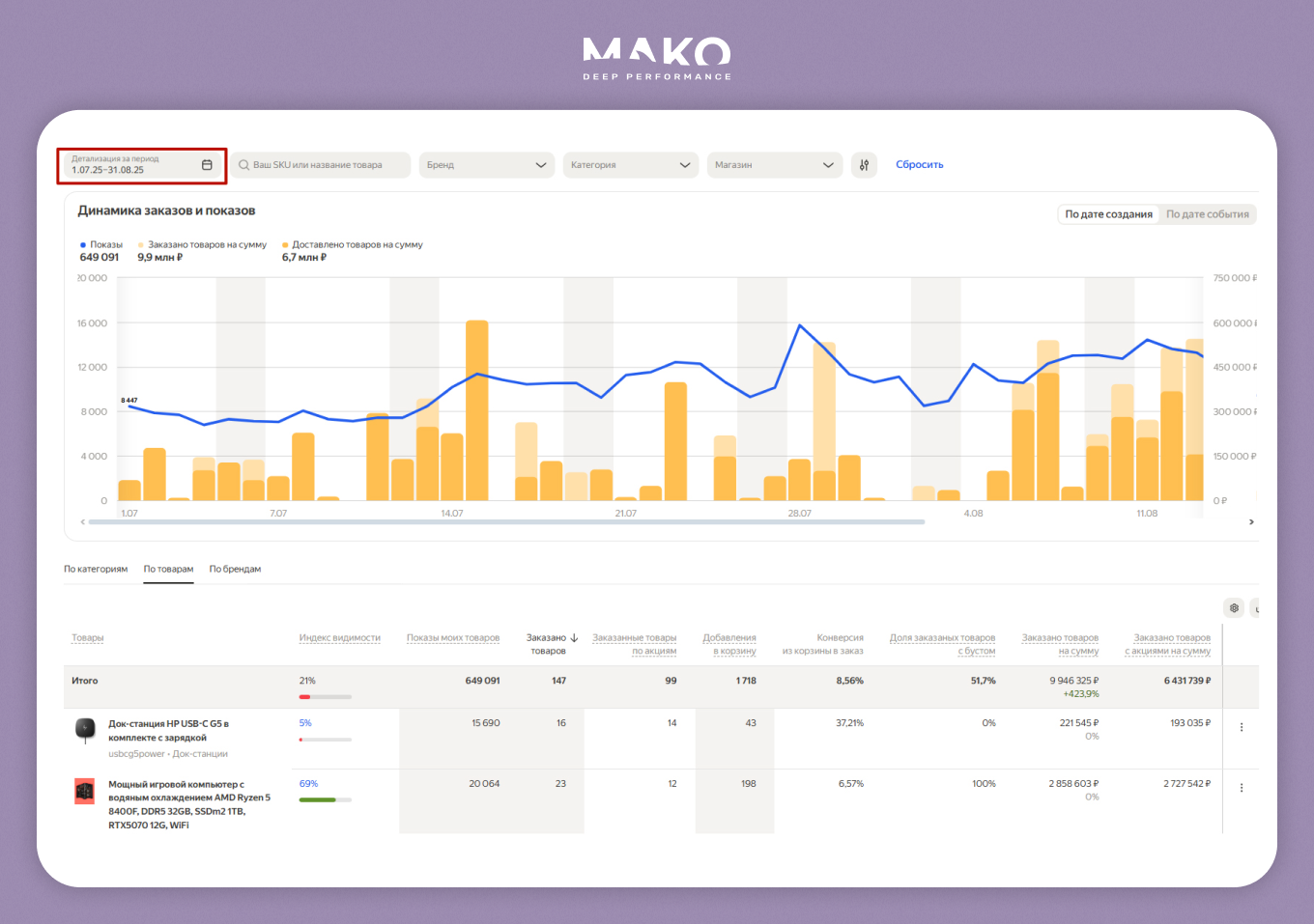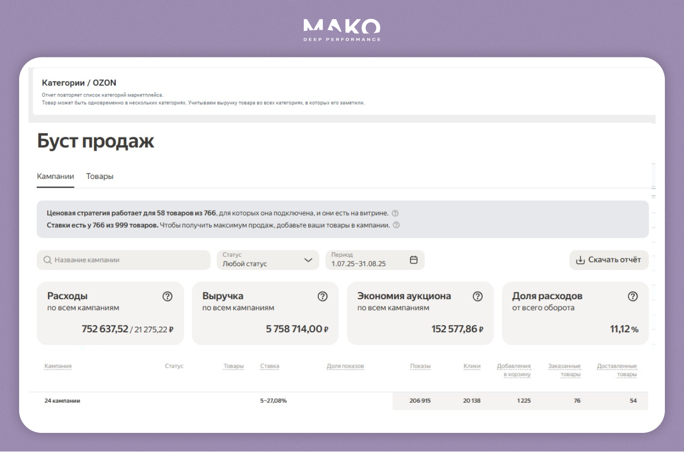 Мы проанализировали, какие позиции можно добавить в Акции как совместно с бустом продаж, так и без него. Составили список товаров с учетом рентабельности, запустили рекламу и акции.