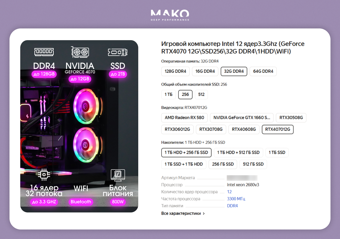 Игровые компьютеры так продвигать нельзя: они требуют обоснования. Мы внедрили в карточки графическую воронку Amazon, которая позволяет давать покупателям максимум информации о товарах и постоянно решать вопросы, возникающие при выборе: