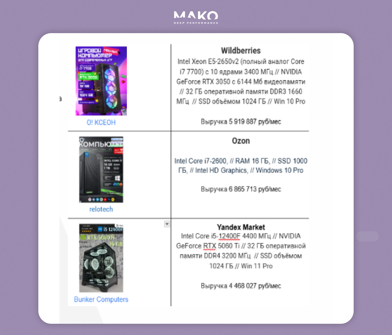 На основе анализа сформировали и начали продвигать 4 новые сборки в различных вариантах комплектующих. Они стали хорошо продаваться.