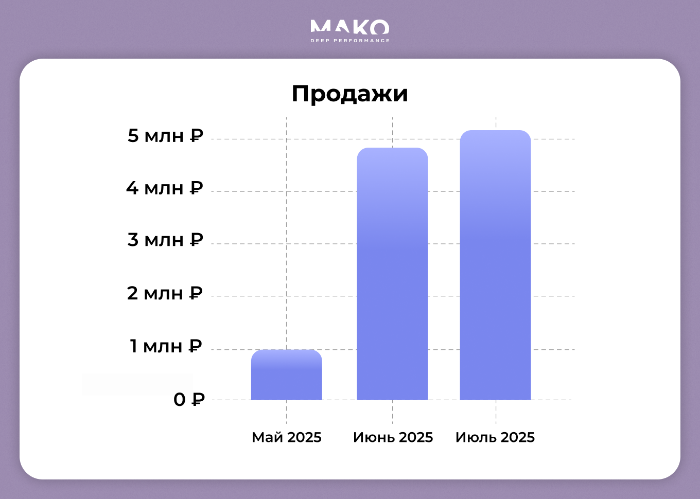 Всего за 2 месяца продажи увеличились в 5 раз.
