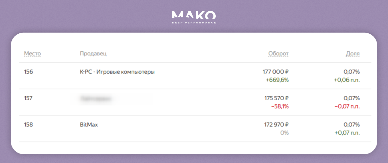 Не все знают, что в некоторых нишах Яндекс Маркет ? безусловный лидер по оборотам. Это связано с тем, что ранее Яндекс агрегировал все предложения на рынке и использовал их как систему для сравнения цен. Например, у пользователей сформировалась привычка смотреть дорогостоящую технику именно здесь. По продажам компьютеров и системных блоков Яндекс Маркет обгоняет и Wildberry, и Ozon.
