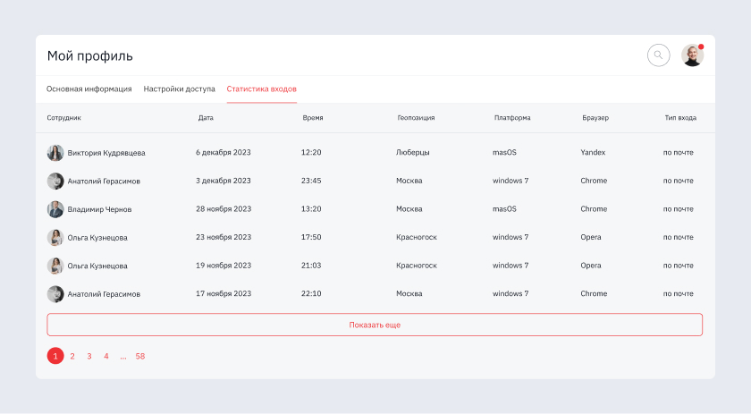 База объектов — главные активы агентства. Мы разработали модуль безопасности для администраторов. В системе ведется подробная регистрация: видно, какой сотрудник, в какое время, с какого IP и устройства заходил в CRM. Это позволяет контролировать доступ к данным и предотвращать их утечку.