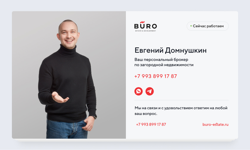 PDF превращается не просто в шаблон. Система определяет, какой именно сотрудник скачивает файл, и автоматически подставляет его фото и ссылки на финальный слайд. Клиент получает персонализированный документ, который выглядит как ручная работа. Это ошибка, когда клиент звонит не так часто или в общий колл-центр.