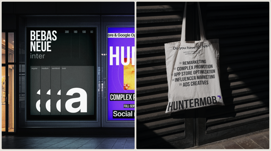 В шрифтах тоже хотелось что-то акцентное. Взяли «Bebas Neue» и старый-добрый «Inter». Несколько начертаний, всё на контрастах, на грани, при этом работа комплексная и чистая.