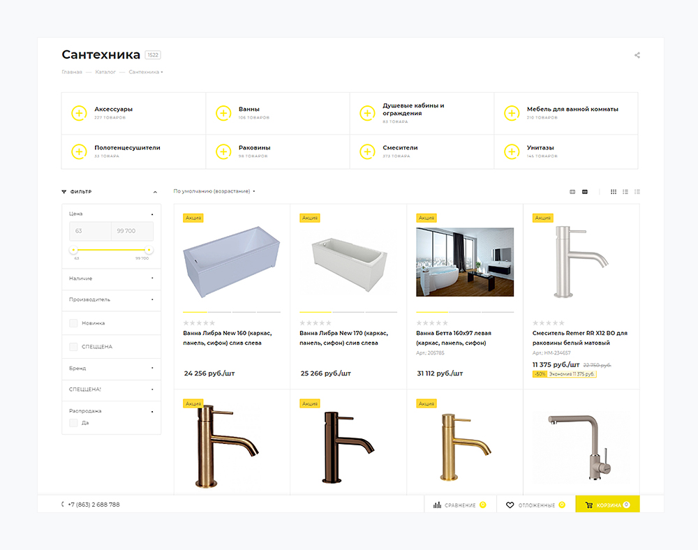 Дизайн карточек товаров также претерпел изменения. Акцент сместился на визуальную презентацию продукции. В сантехническом разделе покупатели могут рассмотреть товары под разными углами и изучить технические схемы с размерными характеристиками.