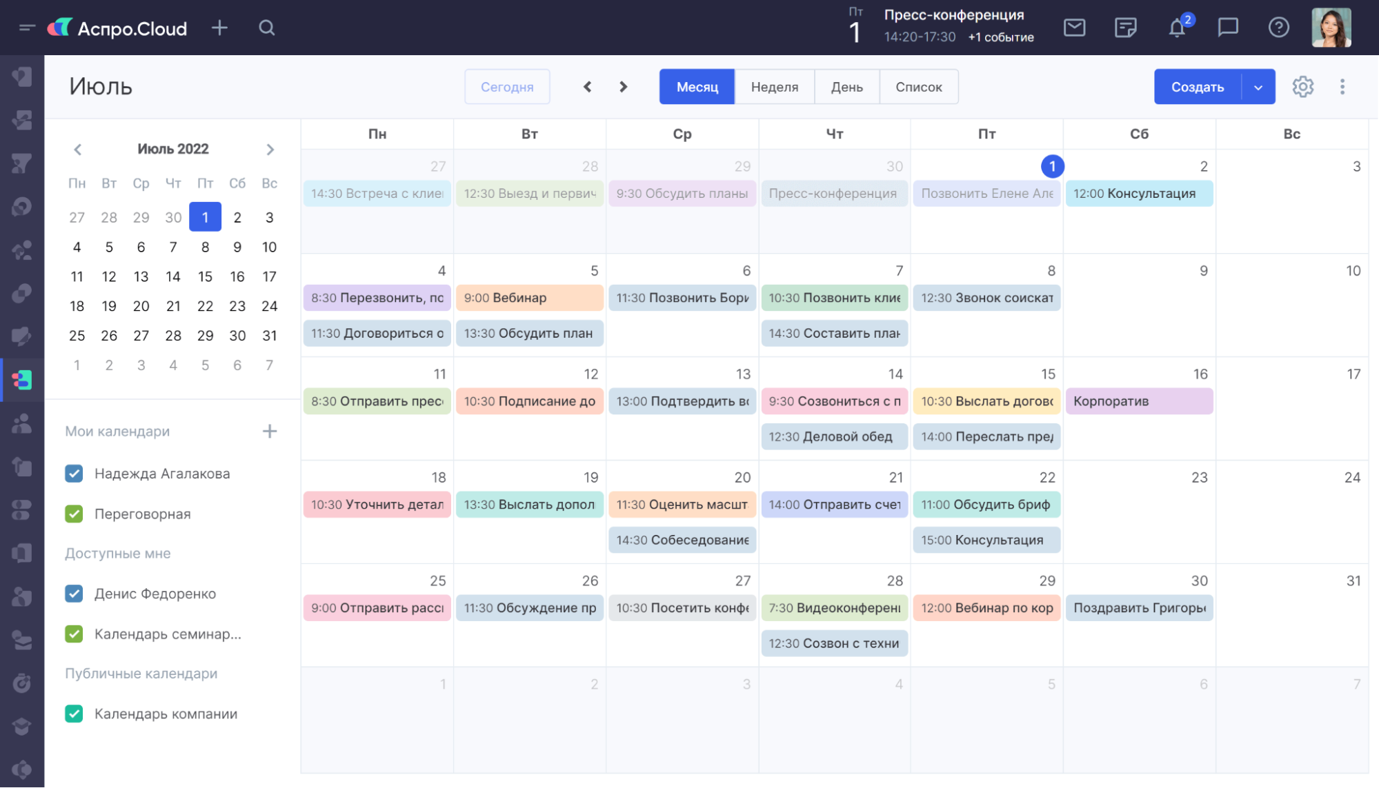 Первоочередным шагом стала настройка календарного модуля для структурирования встреч и мероприятий. Платформа позволила организовать как коллективное планирование с возможностью совместного доступа для коллег, так и ведение персональных календарей с синхронизацией с внешними сервисами.