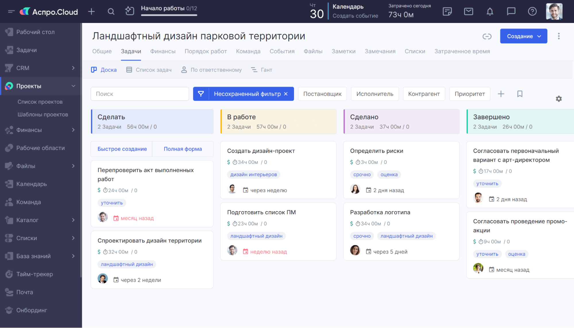 Выбор пал на платформу Аспро.Cloud, которая предоставляет комплексные возможности для управления проектами и клиентскими отношениями.