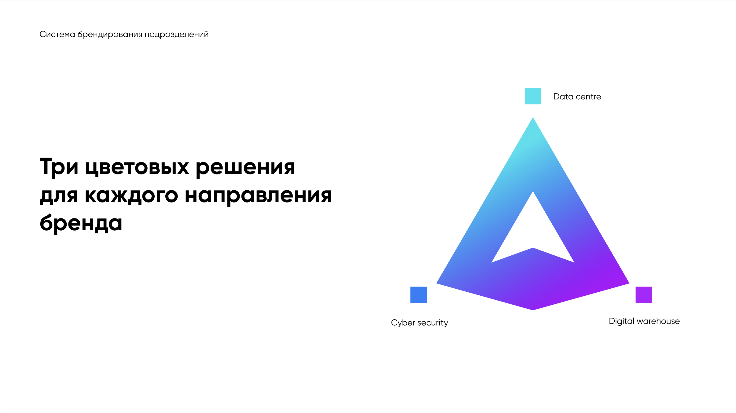 Чтобы структурировать сложную продуктовую архитектуру, мы разделили направления компании по цветовому принципу — это облегчило коммуникацию и восприятие бренда.