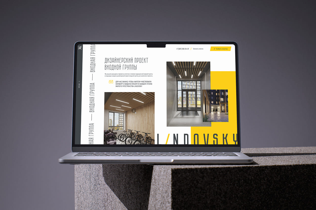 - Минималистичный дизайн с горизонтальным скроллом. Выгодно выделяет проект в сегменте застройщиков региона. Без перегрузки — чистая визуальная логика и премиальное ощущение.