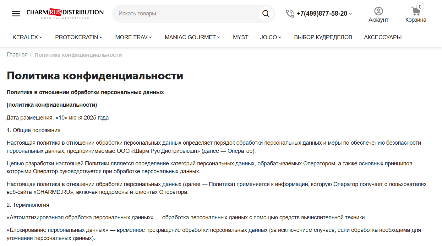 Добавили на сайт документ с политикой обработки персональных данных, чтобы сайт соответствовал всем требованиям 152-ФЗ. Добавили правовые документы по новым правилам: Политика конфиденциальности, Согласие на обработку ПД, Согласие на рекламные рассылки. На формах обратной связи разместили необходимые чек-боксы и ссылки на документы.