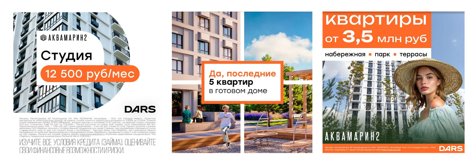 Активное участие застройщика в этом процессе помогло нам: мы использовали макеты из его офлайн-кампаний, что обеспечило креативам узнаваемость и свежесть.