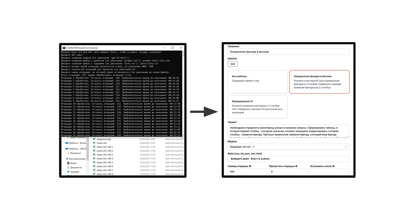 Для повышения производительности настроили работу через стек Python + API + AI + CSV: