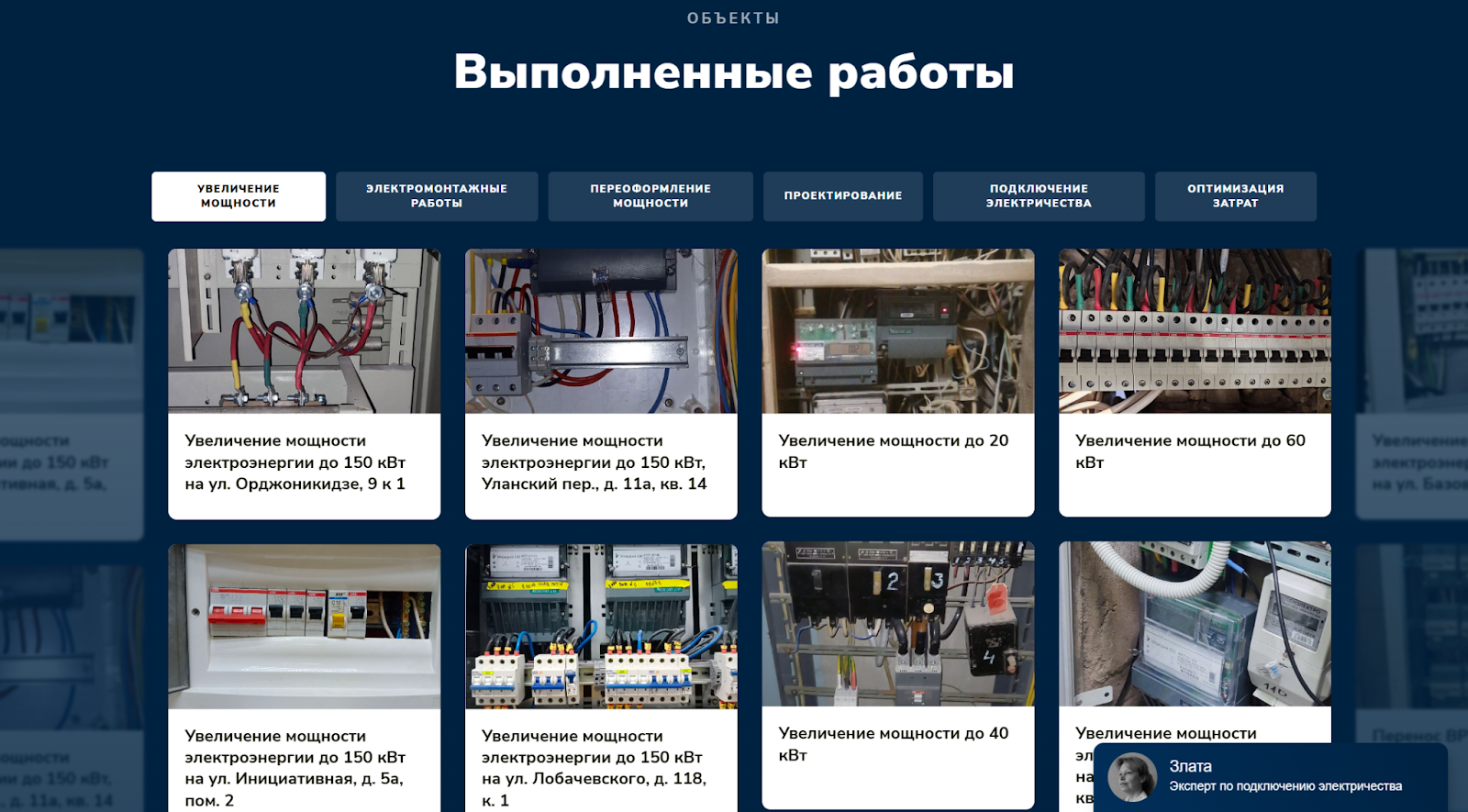 Чтобы показать потенциальным клиентам свой опыт, на современном сайте обязательно должен быть раздел с портфолио: выполненными объектами, проектами, кейсами — всем тем, чем успешно занимается компания.