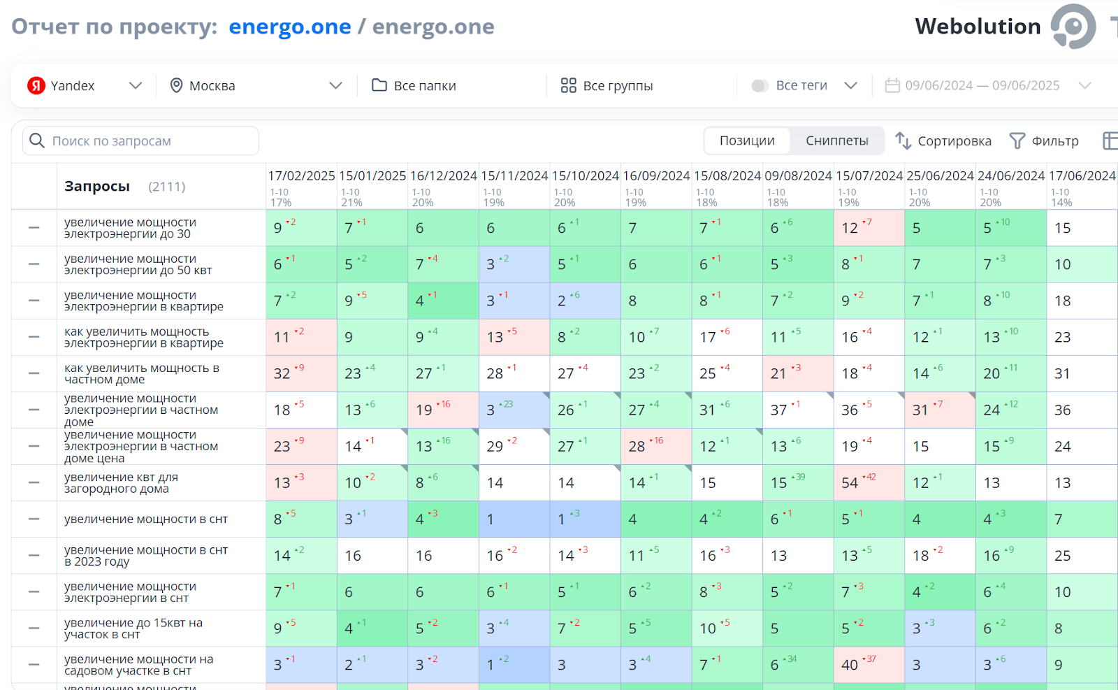 Также сделали отдельные страницы по мощностям, которых не было у конкурентов и которые помогли нам занять топ по низкочастотным запросам.