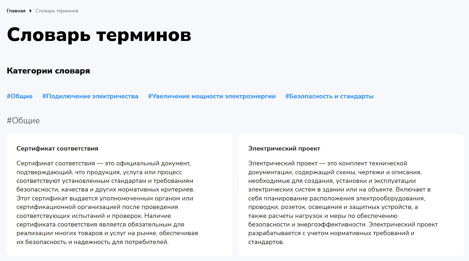 Чем больше полезной информации — тем лучше. Блог, FAQ, словари терминов, нормативная база — все это помогает клиенту принять решение и повышает вашу видимость в поиске.