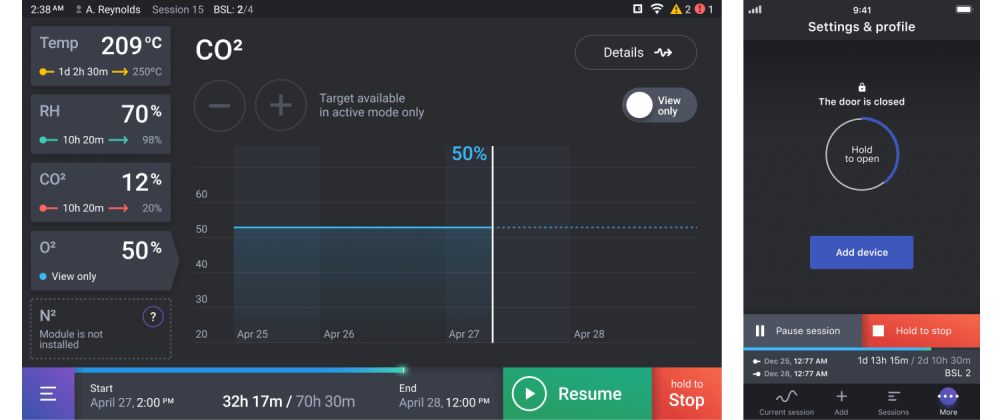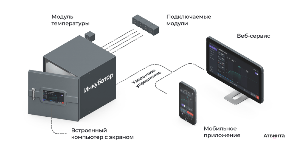 Исследователи управляют работой электронных модулей и получают информацию от датчиков через экран компьютера, встроенного в камеру инкубатора. Или удаленно — через десктопный веб-сервис или мобильное приложение.