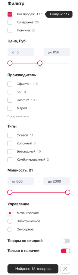 Не потеряться в разнообразии ассортимента помогает система фильтров. Своего рода центр быстрой сортировки товаров — по популярности, цене, новизне, производителю и характеристикам.