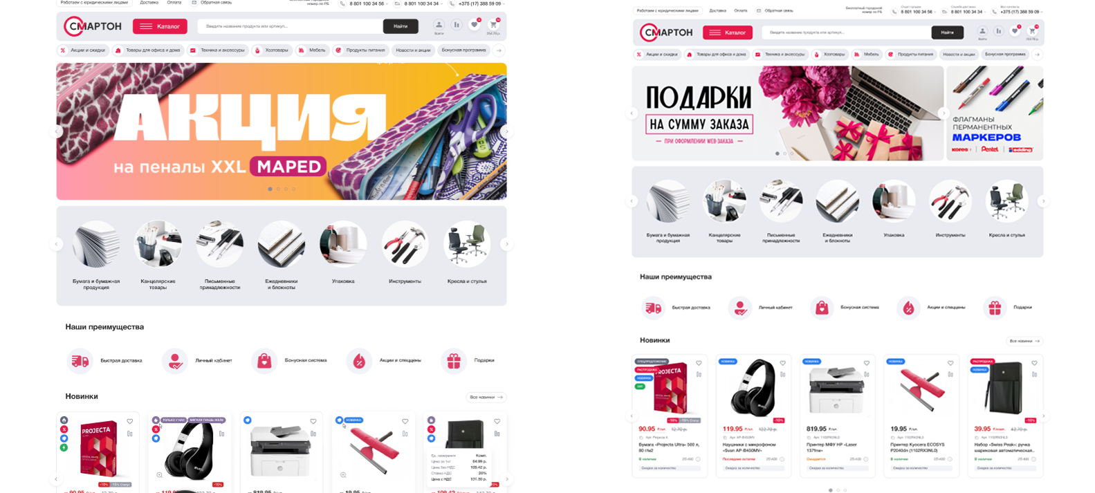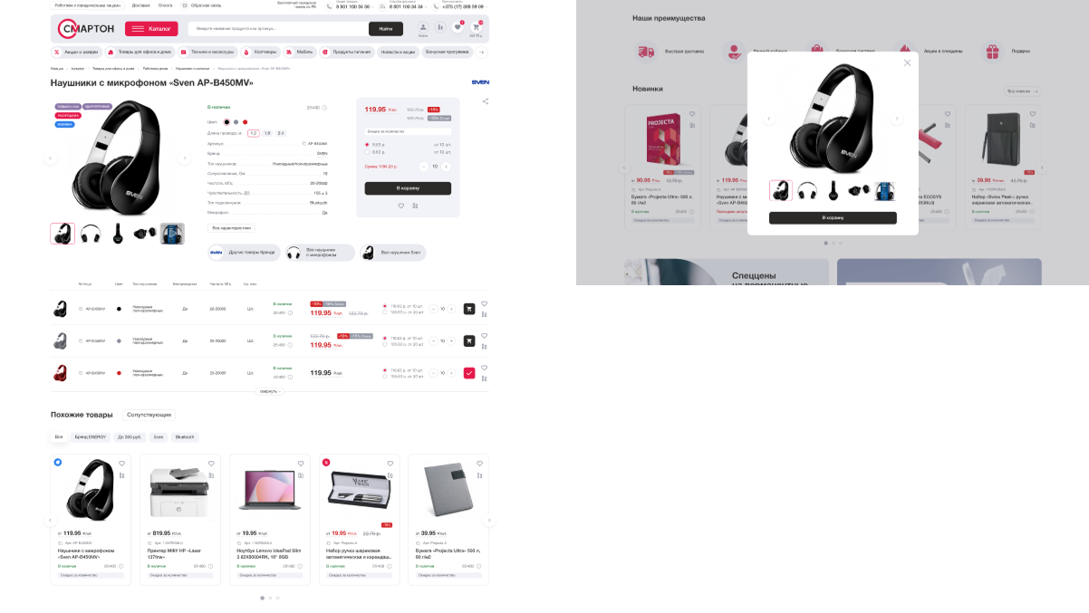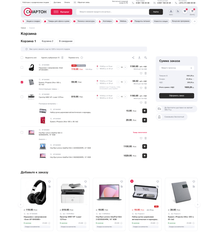Smarton.by ориентирован на корпоративных клиентов, зарегистрированных в системе. Однако пользоваться его интерфейсом должно быть удобно всем, в том числе неавторизованному пользователю. Ведь тот, кто поначалу просто зашел полистать каталог и познакомиться с ассортиментом, может впоследствии стать постоянным партнером.