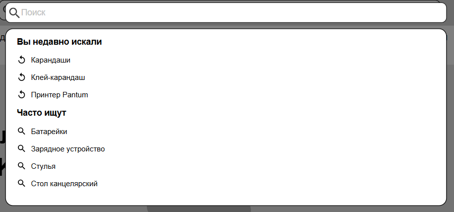 Дополнительно учли вывод подсказок. Например, можно показывать как популярные запросы, так и то, что недавно искал конкретный клиент.