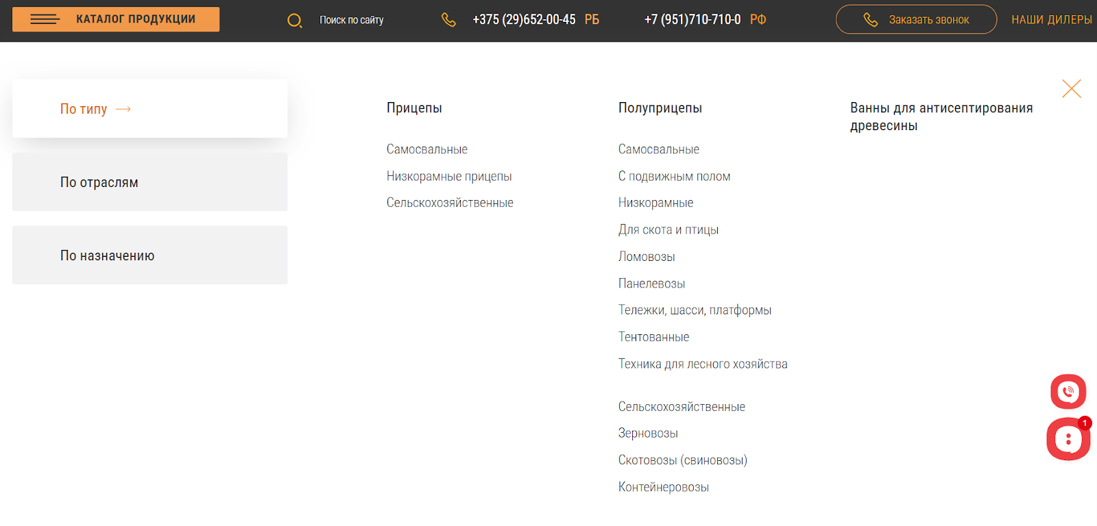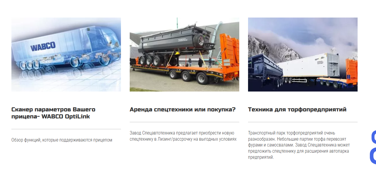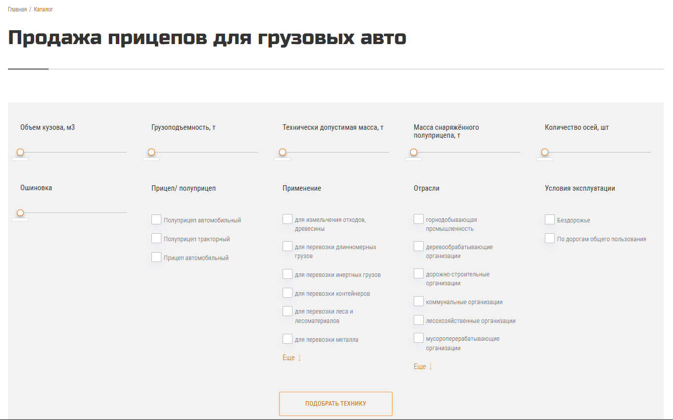Также заказчик ориентировался на функциональные решения конкурентов, хотел внедрить подборщик прицепов и конфигуратор, позволяющий упростить выбор техники под задачи клиента.