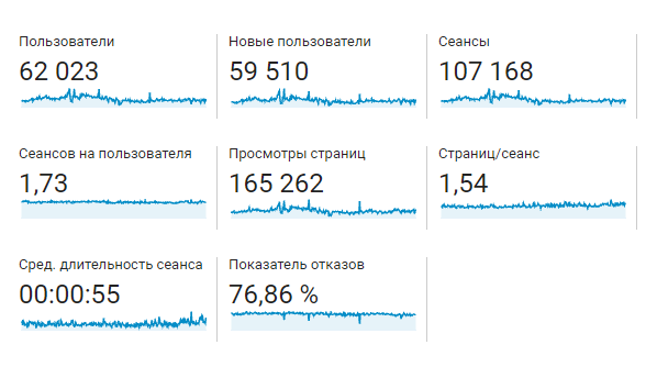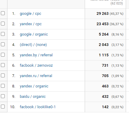 При этом поведение посетителей не отслеживалось — цели, воронки, сегменты и электронная торговля не были настроены, как и многоканальная атрибуция.