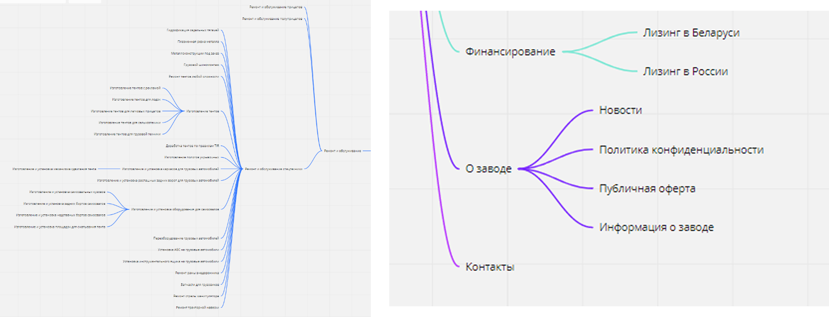В рамках SEO-задачи был собран отдельный бриф: требовалось проработать региональность (Беларусь + регионы РФ), внедрить продуктовые классификаторы (по отраслям, типу груза, виду подключения) и усилить страницы услуг (включая ремонт).