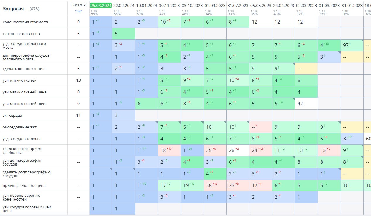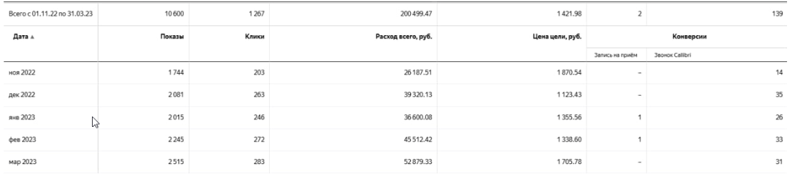 По направлению неврология, несмотря на его второстепенное значение для клиники, удалось получать лиды по цене 1 400–1 800 ?. ФГДС — одно из самых конкурентных направлений в регионе — показало стабильные результаты со стоимостью лида 900–1 200 ? и почти 100% конверсией в запись на приём, что обеспечивало рекламным кампаниям устойчивую эффективность.
