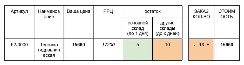 Центральным элементом интерфейса стал каталог. Мы сознательно выбрали именно табличное представление в стиле Excel-прайса — именно так дилеры привыкли работать годами.