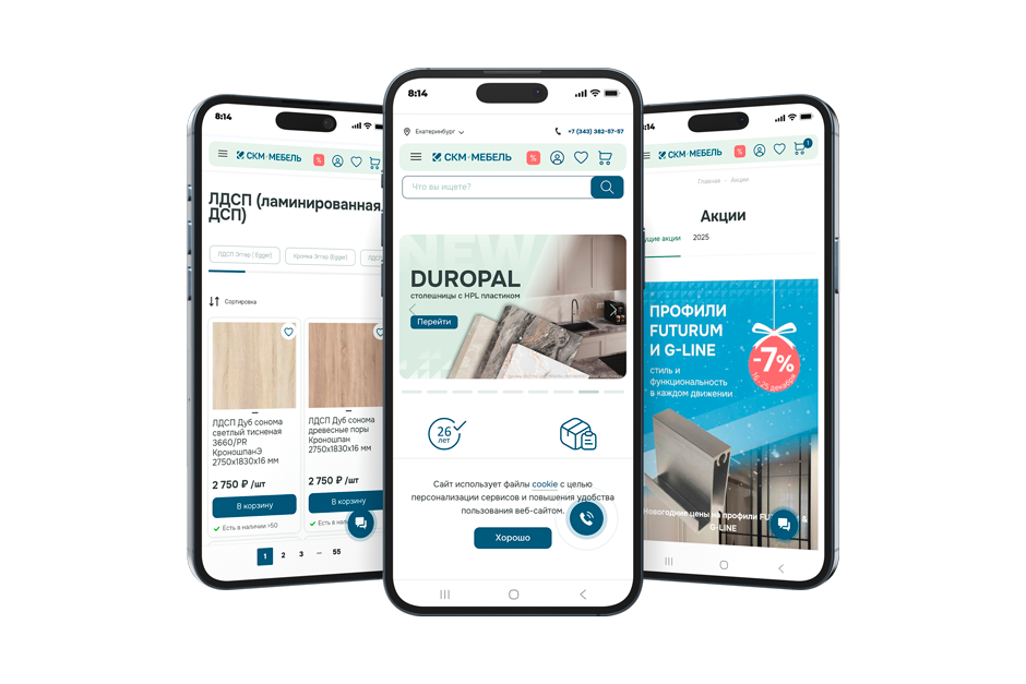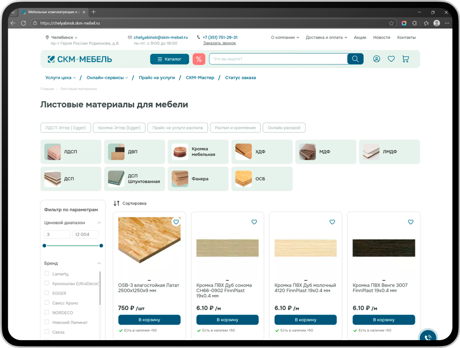 Особое внимание уделили мобильной версии: ведь пользователи часто работают с сайтом в цеху, на складе или в дороге.