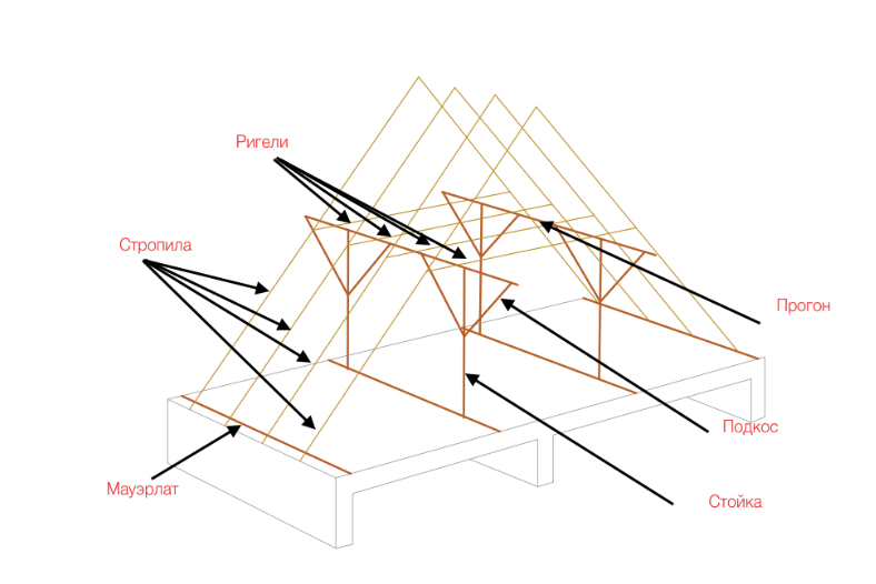 Схемы. Иллюстрировали особенности строительства или проектирования. Например, так показывали основные элементы крыши: