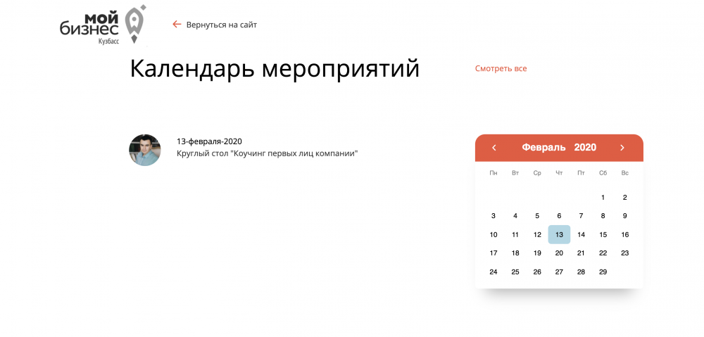 Центр «Мой бизнес Кузбасс» и его партнеры регулярно проводят конференции и круглые столы для бизнеса. Расписание событий отражено в соответствующем разделе в виде календаря. В нем можно посмотреть расписание на ближайший месяц. А по клику на дату — увидеть все мероприятия, которые пройдут в этот день