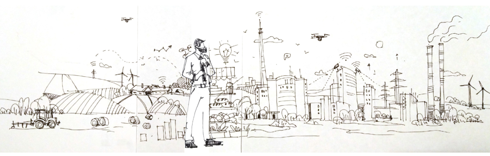 Среди них пищевая промышленность, сельское хозяйство, промышленные беспилотники, связь, ключевые для региона отрасли. Центральная фигура иллюстрации — предприниматель, который шагает в открытую дверь новых бизнес-возможностей.