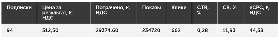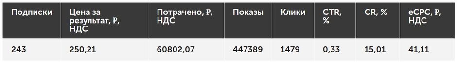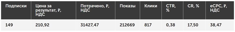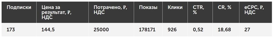 Наша ключевая победа – падение цены за подписку на 31,5% (с 210,92 руб. до 144,51 руб.). Это значит, что теперь каждый новый подписчик обходится почти на треть дешевле, чем раньше.