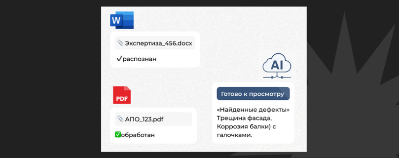 Мы внедрили ИИ-агента, который берёт на себя полный цикл обработки АПО и экспертиз девелопера. Агент распознаёт загруженные документы (Word и сканы), приводит данные к единому формату и автоматически классифицирует дефекты и виды работ по справочникам.