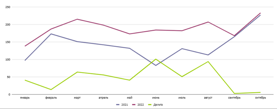 Сравнение динамики заявок с сайта за 2022 и 2023 год: