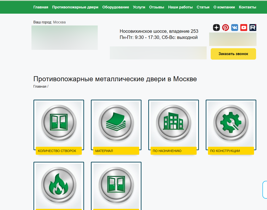 Хотя по смыслу он выглядел менее конверсионным, чем привычные «противопожарные двери купить» или «противопожарные двери цена», мы решили сделать на нём акцент — и не прогадали.