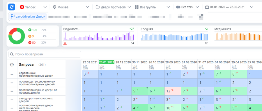 Позиции в ТОПе Яндекса по запросу “противопожарные двери”: