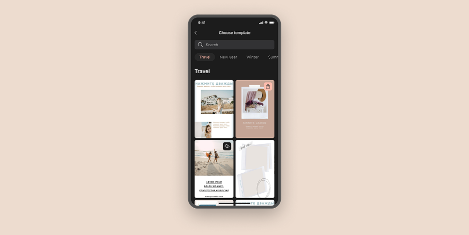 Мы полностью переосмыслили работу с готовым шаблонами. Разделили шаблоны по категориям и добавили возможность выбора нужного разрешения.