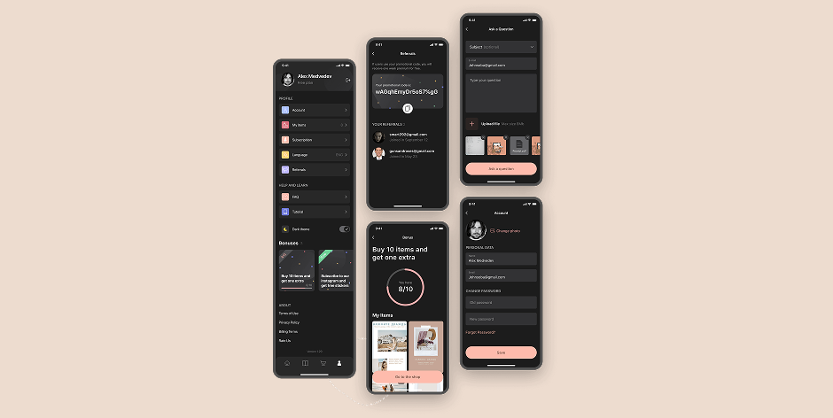 Для мотивации к регистрации предложили внедрить бонусы, а также реферальную систему, которая позволит удерживать текущую аудиторию и привлекать новую. Дали возможность переключать тему, чтобы было комфортно работать в любое время суток. А также в целом проработали навигацию, сделав акценты на главном, и разделив точки входа по смысловым блокам.